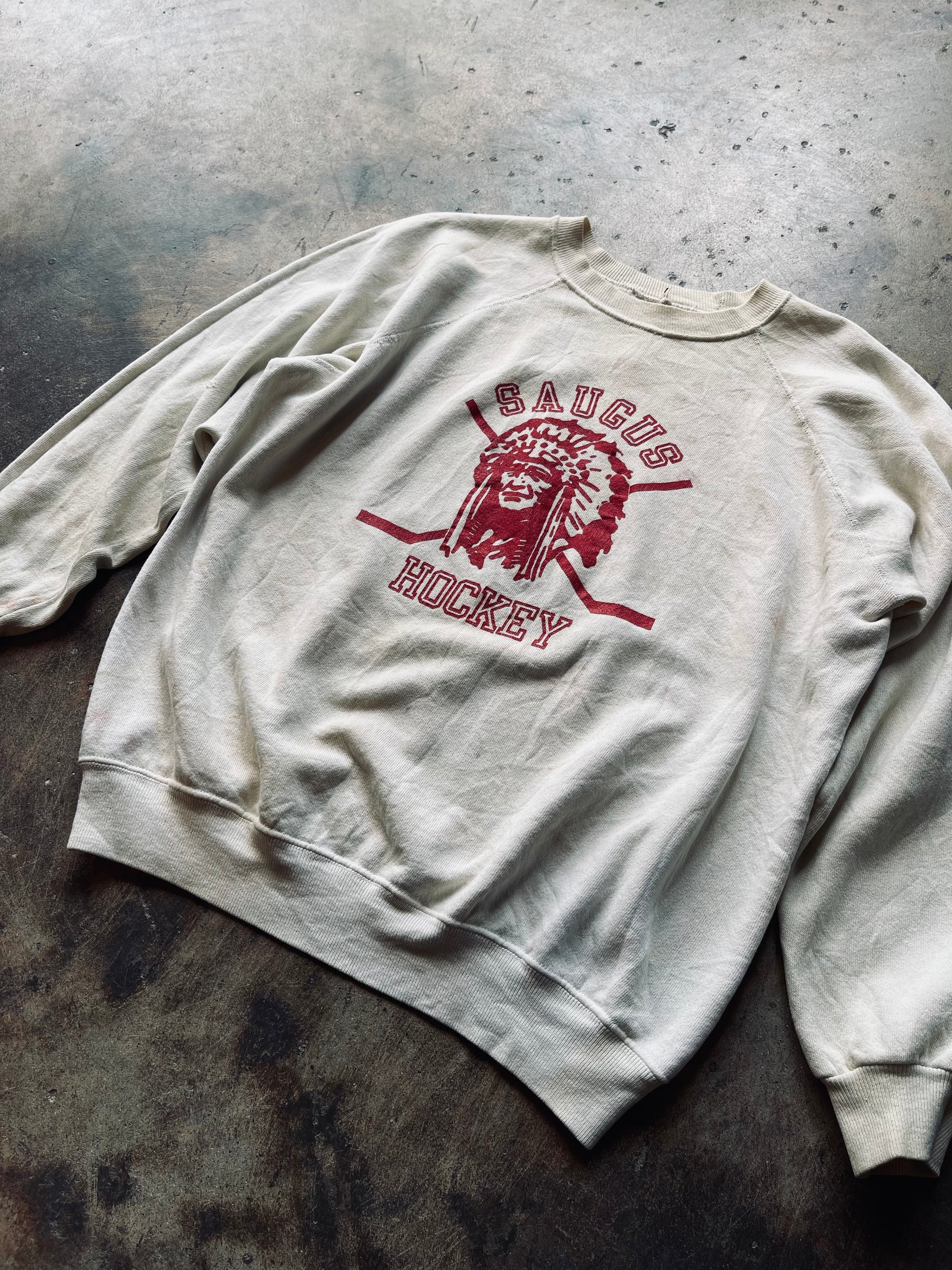 1970s-80s Saugus Hockey Raglan Sleeve Sweatshirt | Medium