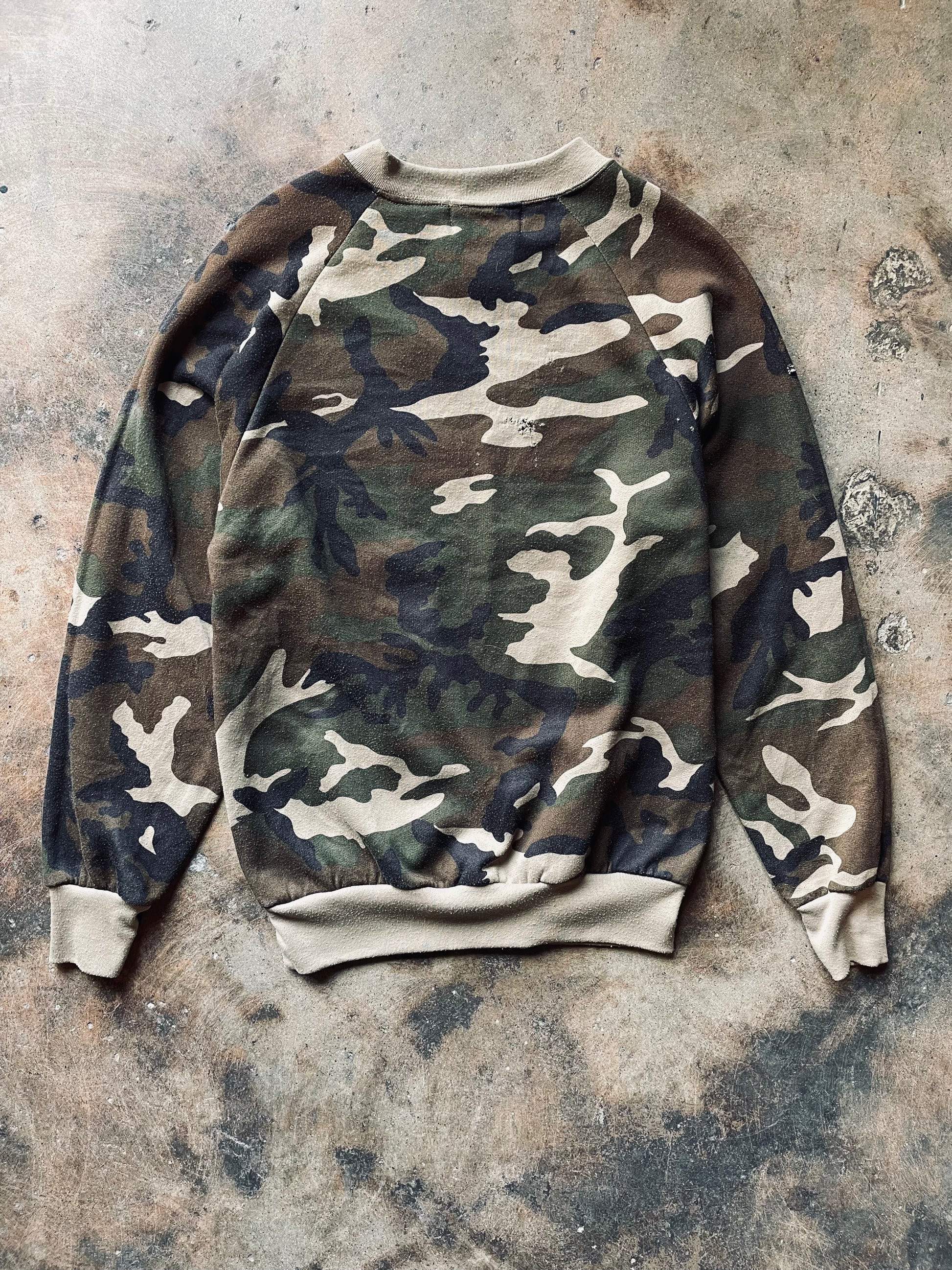 1980’s Duck Bay Camo Raglan Sleeve Sweatshirt | Medium