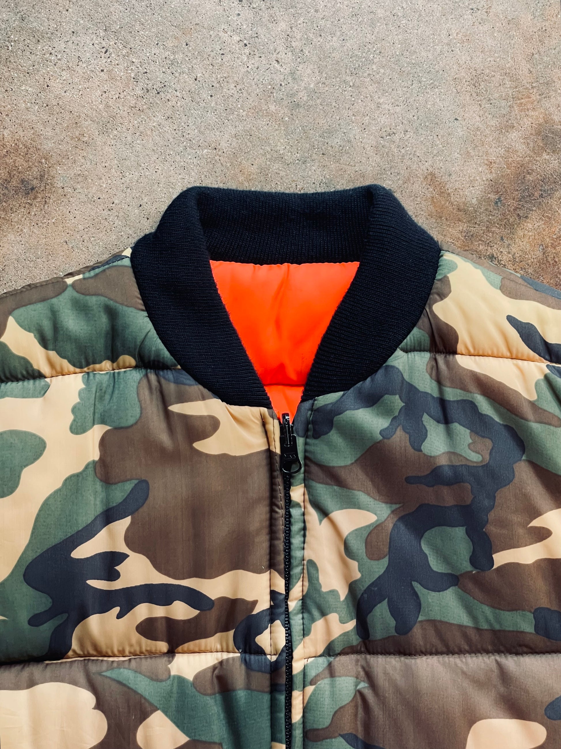 Condition | Good. One small stain above right pocket. One small stain on orange side near left pocket. (Both pictured)